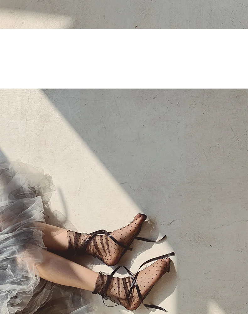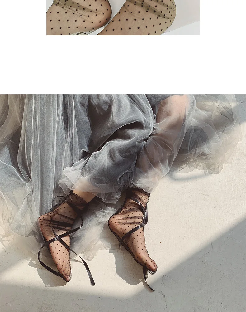 Носки женские, тюлевые, в горошек, ультратонкие, забавные, прозрачные
