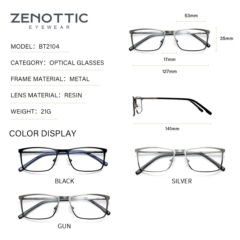 Очки ZENOTTIC Мужские квадратные оптические, металлическая оправа, ...
