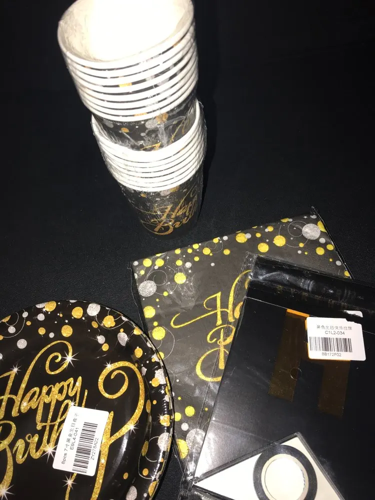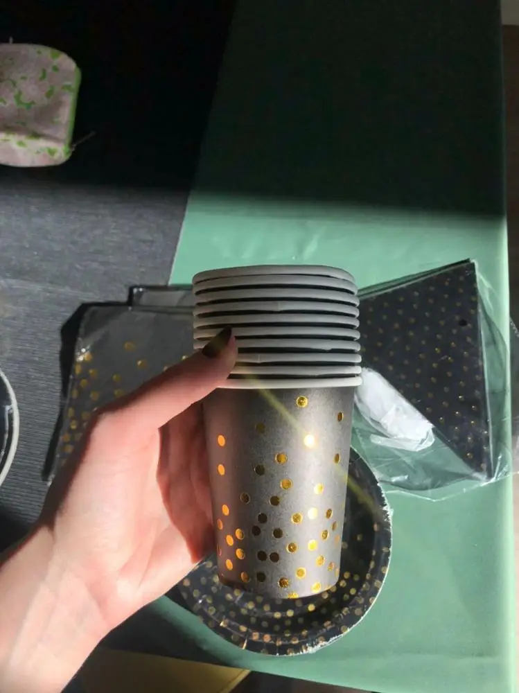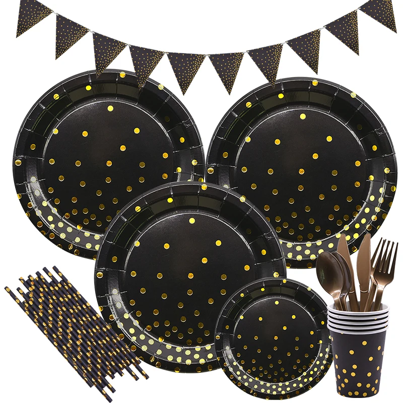 1 комплект черного и золотого цвета в горошек Бумага салфетка под тарелку кружку одноразовые вечерние посуда набор для детей подарок на день рождения Свадебная вечеринка вечерние украшения свадебные принадлежности
