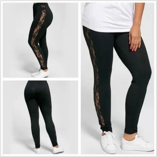 Сексуальные женские обтягивающие брюки большого размера с завышенной талией, с боковыми вставками и кружевом, эластичные длинные брюки-карандаш, большие размеры