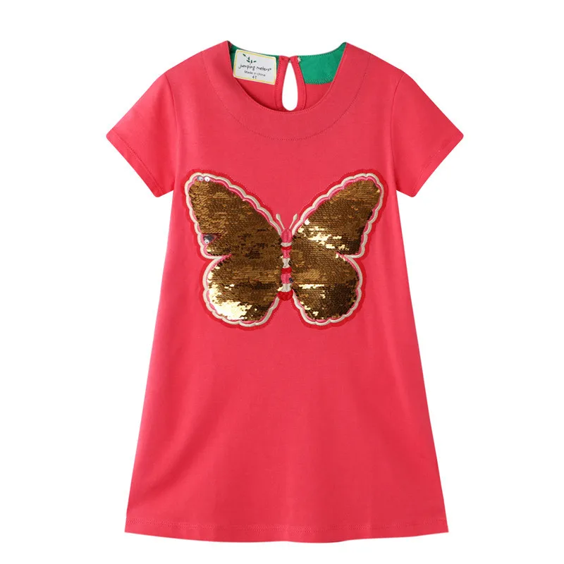 Jumping MetersНовое Брендовое платье принцессы с бусинами и бабочками для девочек, летняя одежда, вечерние Хлопковые Платья с животными для малышей