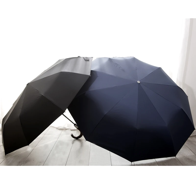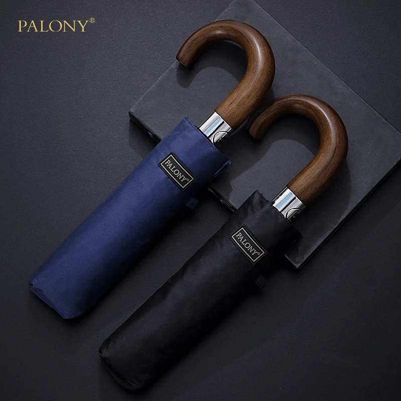 Складывающаяся в три сложения Автоматическая деревянная гибкая ручка Защита от УФ и ветрозащитный мужской деловой черный зонт 8k с покрытием солнечный и дождливый зонт