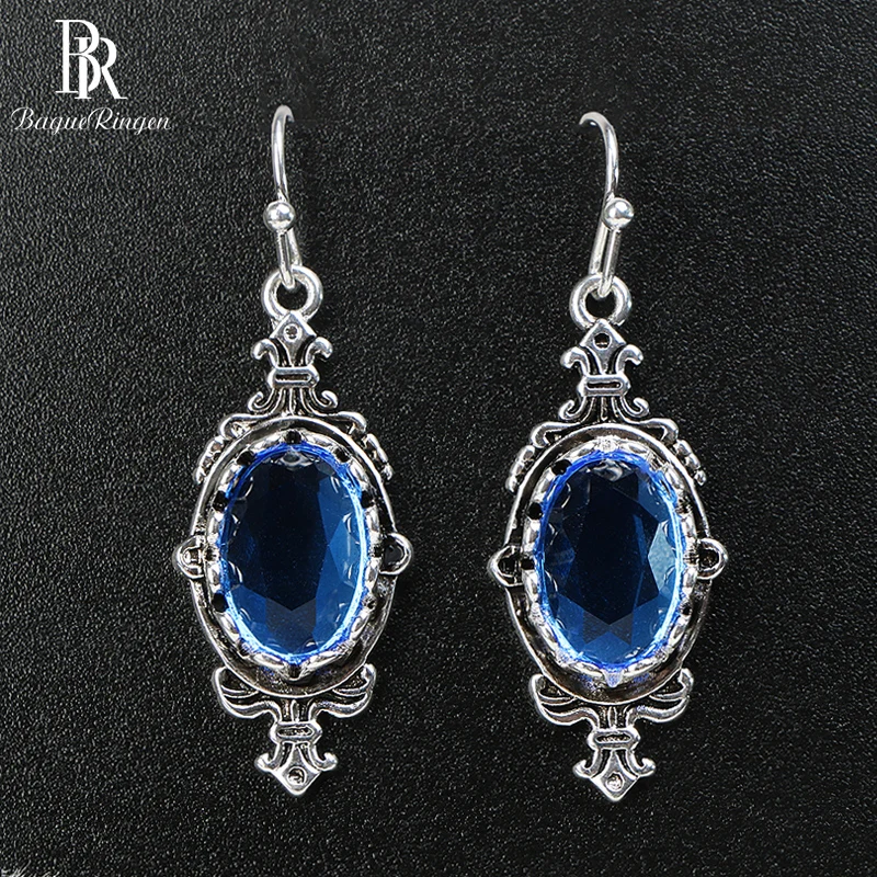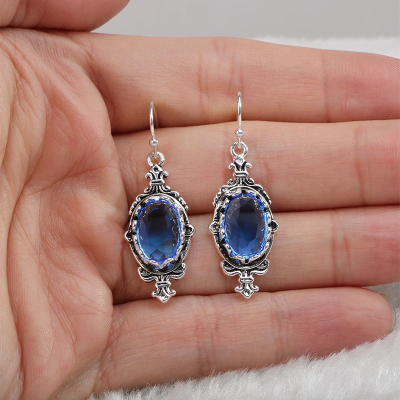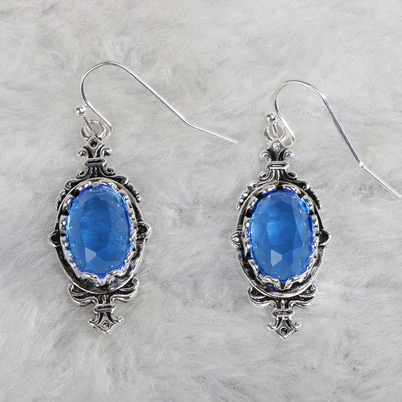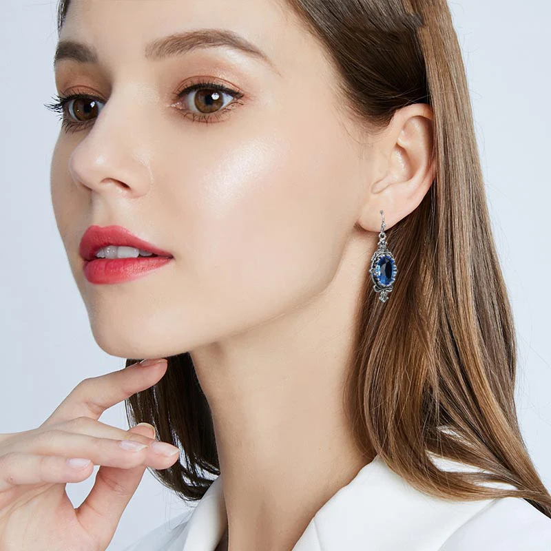Серьги женские из серебра 925 пробы, с драгоценными камни-сапфиры