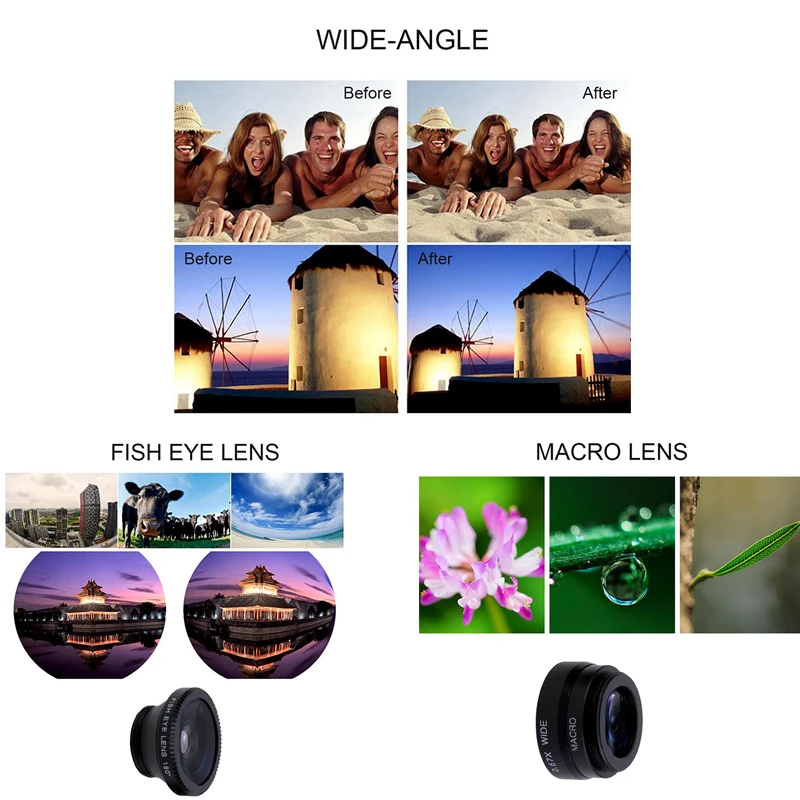 Комплекты широкоугольных макрообъективов рыбий глаз с зажимом для Мобильный телефон объективов Rybie Oko Makro Obiektyw Do Telefonu