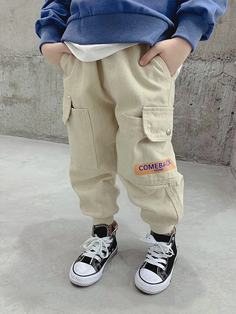 Брюки-карго для мальчиков; Новинка 2022 года; Сезон весна-осень; Детские хлопковые повседневные брюки с большими карманами; От 2 до 7 лет