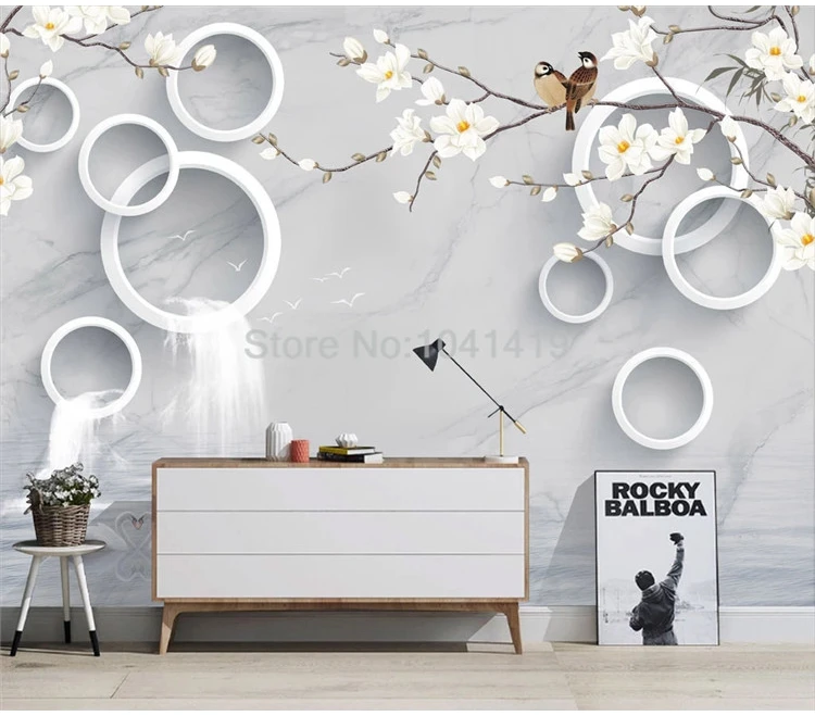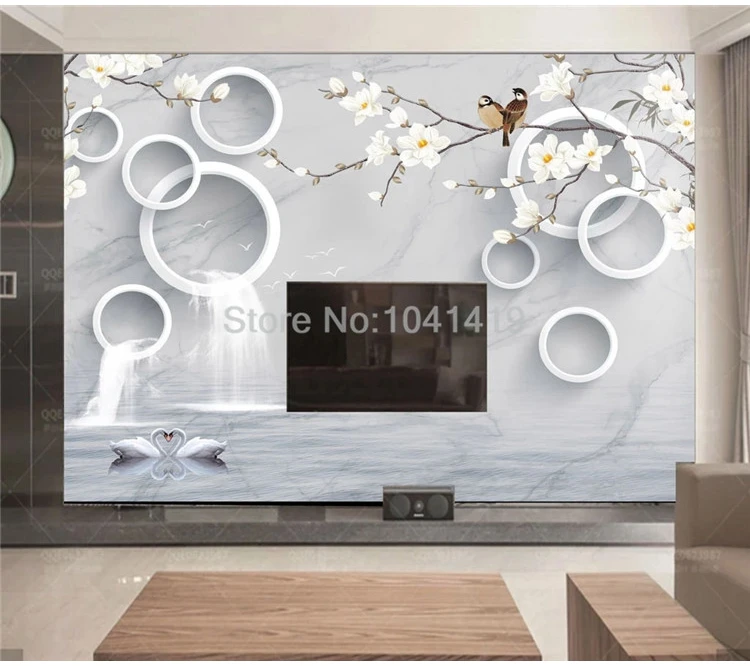 Настенные 3D-обои любого размера на заказ, под мрамор, водопады, круг, цветы, птицы, фото, для гостиной, ТВ, дивана, спальни, фреска