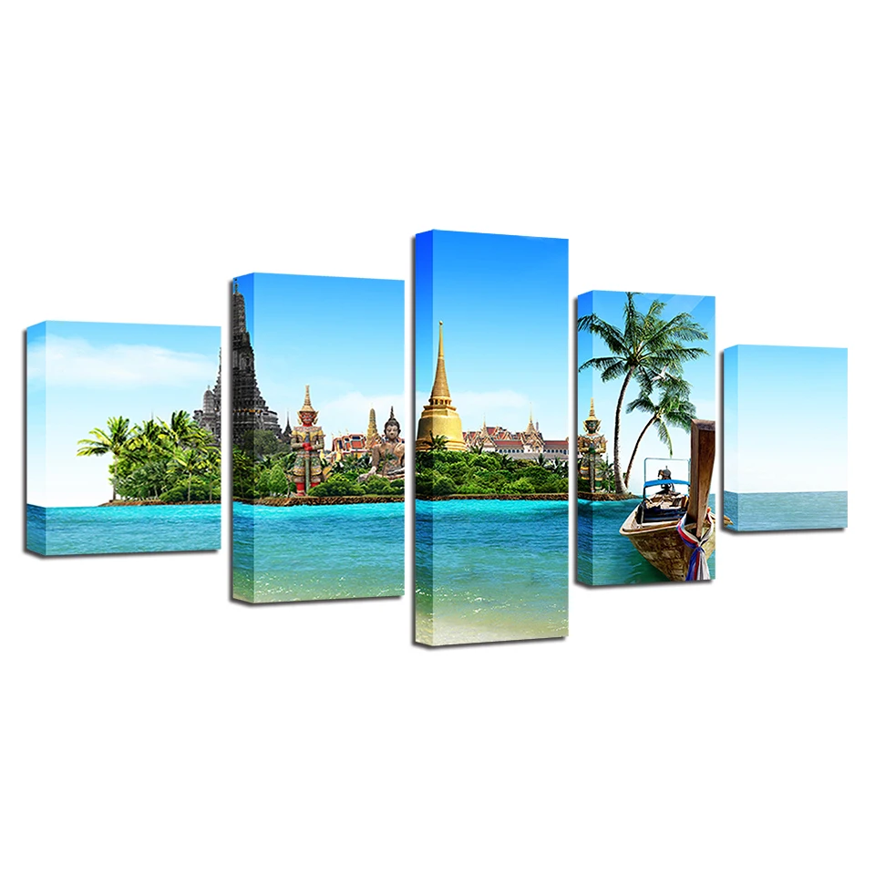 Картины на холсте HD, декор гостиной, 5 шт., картины с тропическим островом, Тайланд, Паттайя, Будда, постер на стену (без рамки)