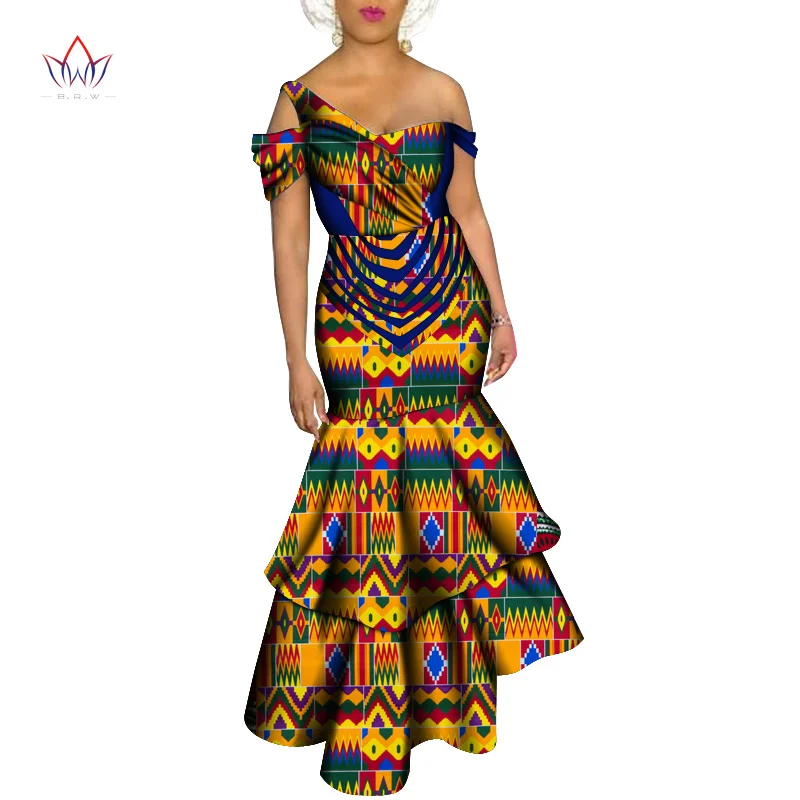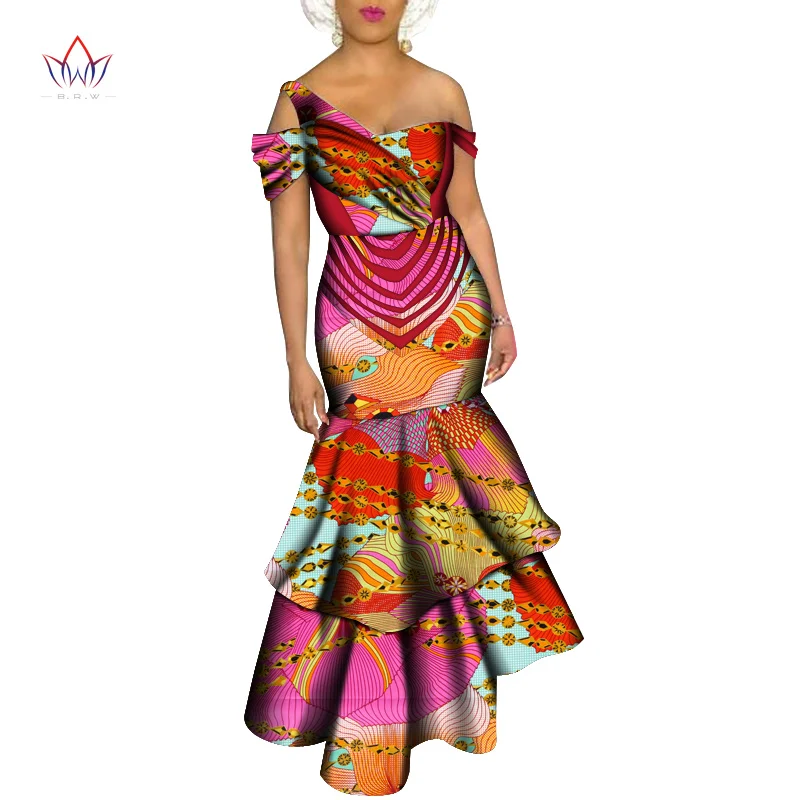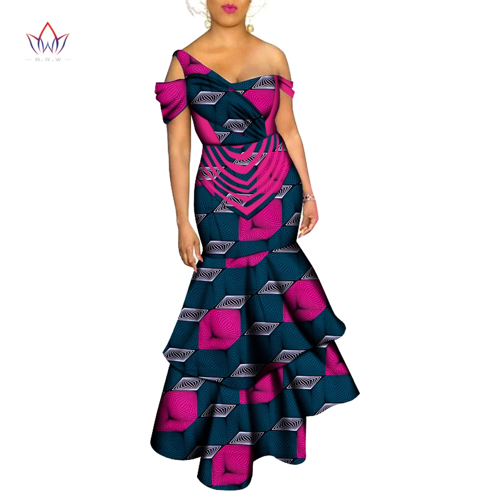 Африканское женское платье базин богатая африканская одежда свадебная одежда сексуальное вечернее платье Африканский принт платье подружки невесты WY6681