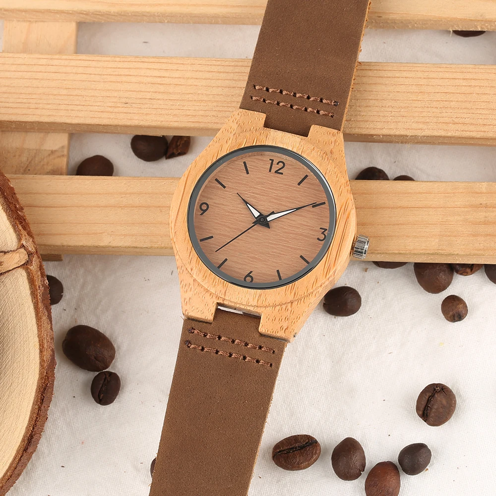 Часы наручные женские с бамбуковым ремешком, Элегантные повседневны...