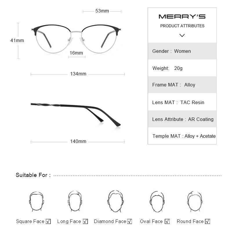Модные женские очки MERRYS, ультралегкие очки, винтажные очки по ре...