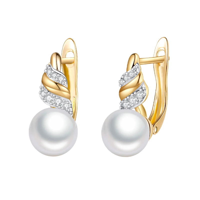 Женские серьги-гвоздики MAIKALE, золотые серьги-гвоздики с инкрустацией из циркония, большие круглый жемчужные серьги