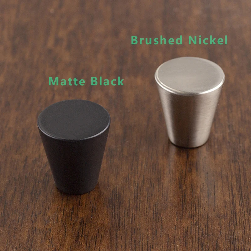 Современный стиль конусной формы твердый цинковый сплав кисти никель медь Матовый Черный цвет круглые ручки для шкафа; На ящики Ручка комода тянуть