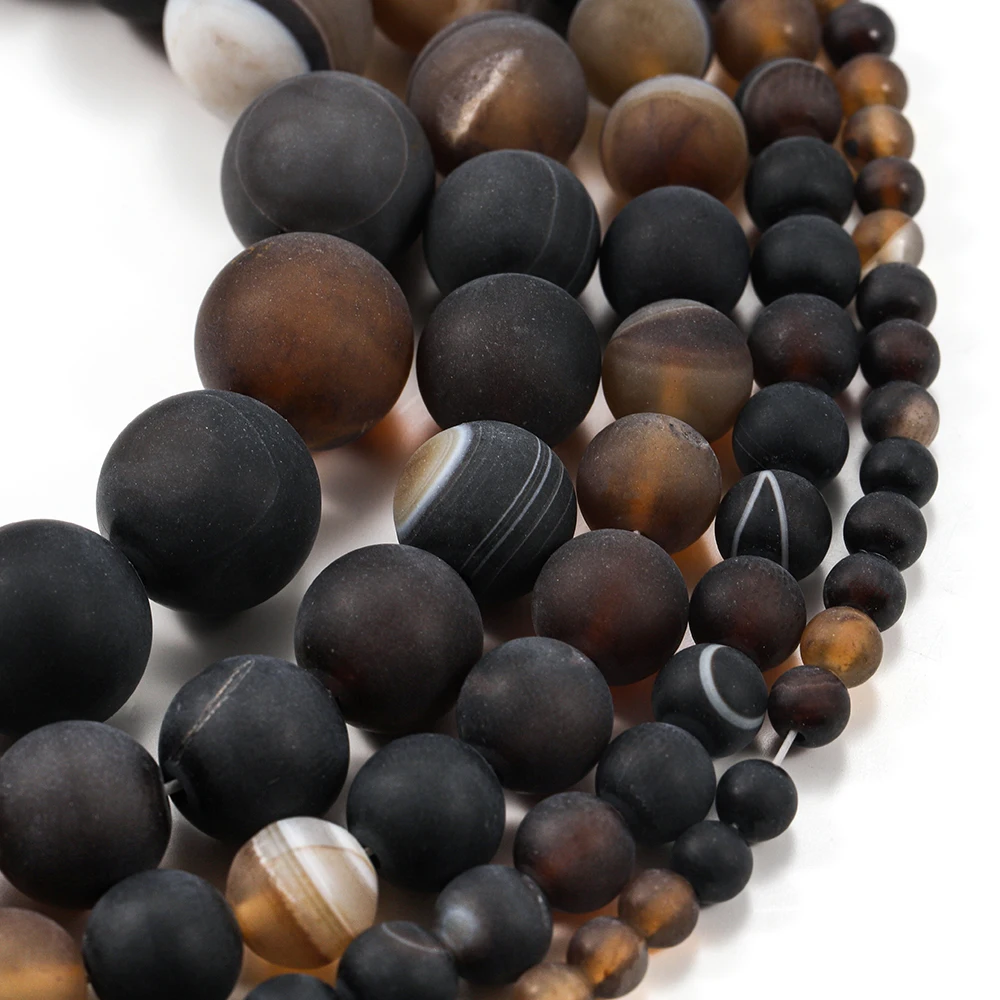 1 нитка/лот 4 6 8 10 12 мм матовые кофейные полосы агатовые бусины камень круглые свободные бусины для браслета ювелирные изделия задатки поставки оптом