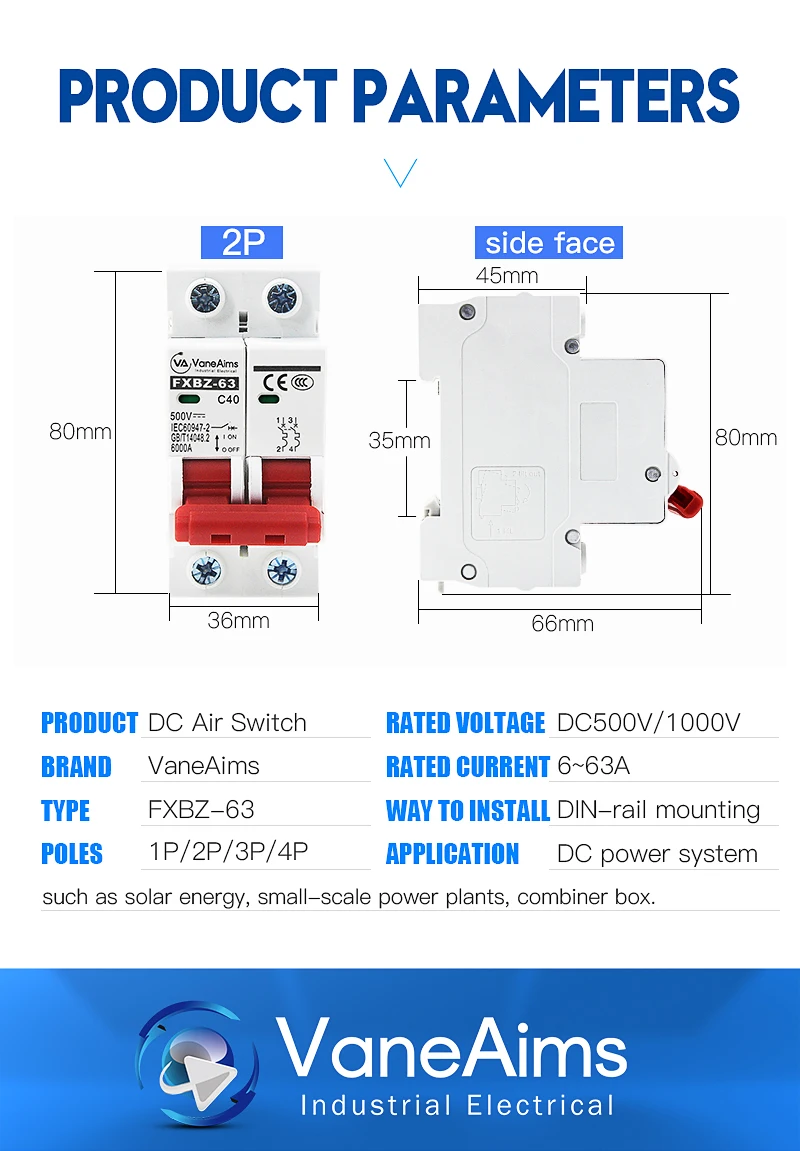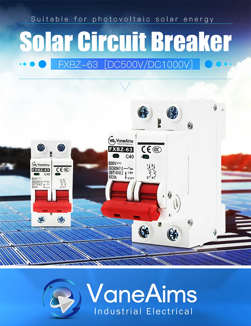 FXBZ-63 миниатюрный автоматический выключатель DC500V 1000V 2P10A16A20A25A32A40A50A63A переменного тока выключатель для фотоэлектрической солнечной батареи Системы DC переключатель PV CE