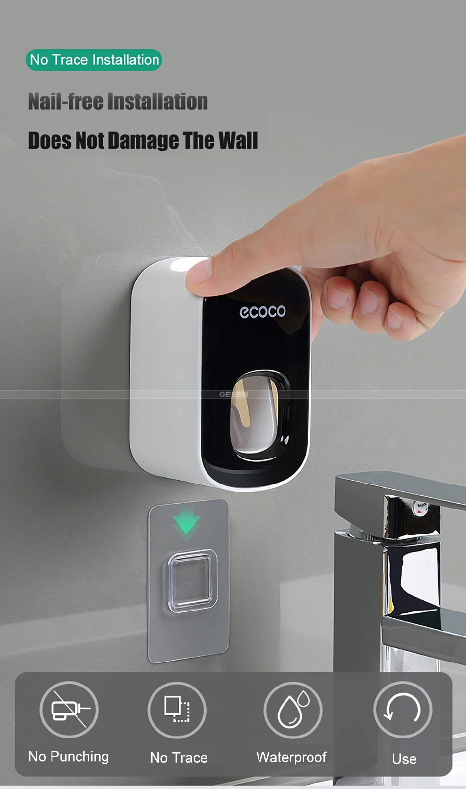 Автоматический Дозатор зубной пасты GESEW, пылезащитный прибор для зубная паста для ленивых, настенное крепление, для туалета, дома, ванной комнаты