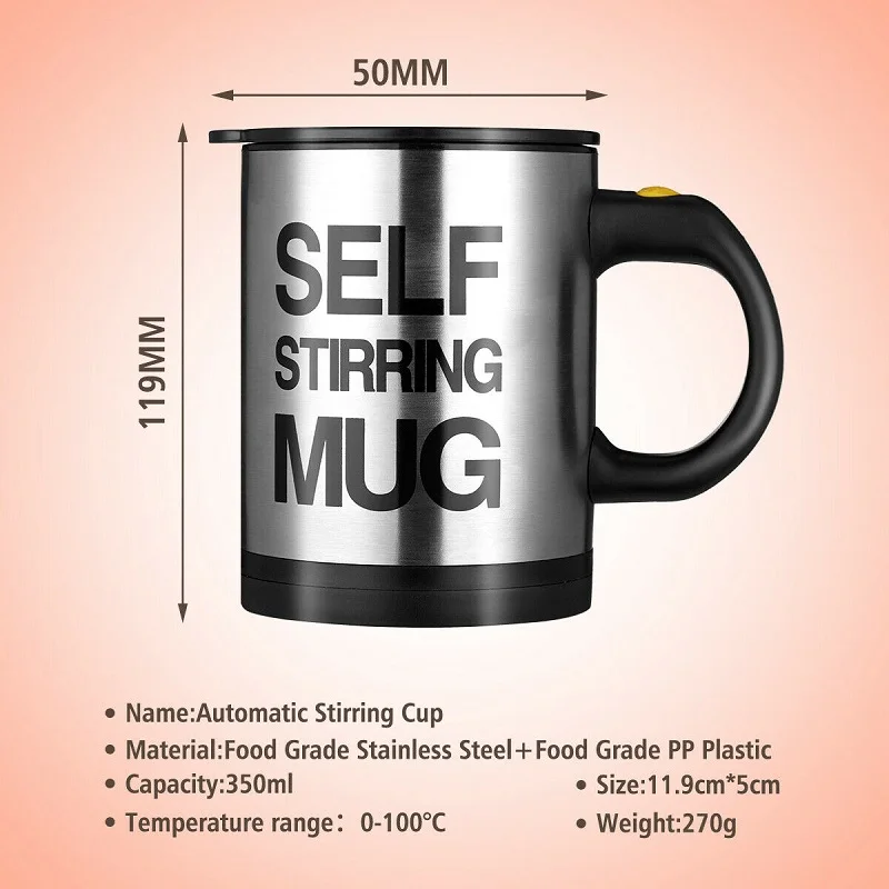 Умная чашка с автоматическим перемешиванием 400 мл, кружка из нержавеющей стали для кофе, молока, для ленивых, с двойной изоляцией