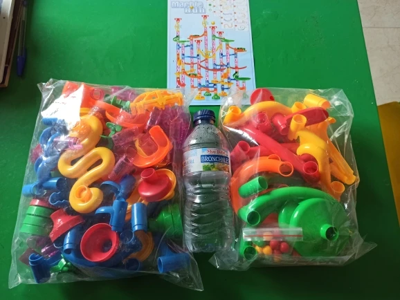 Я выбрал 133 штук с коробкой в комплекте, потому что это подарок. Кусочки маленькие, но они мне очень нравятся. Я думаю, что это займет много времени, когда вы видите это, потому что это очень красочно. Прилагаемые фотографии, одна с бутылкой воды, чтобы оценить размер деталей примерно. Рекомендуется.