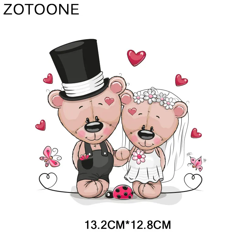 Детские нашивки ZOTOONE с мультяшным медведем и сердцем, наклейки с милыми животными, термотрансферные нашивки для одежды, виниловые аппликации с буквами E