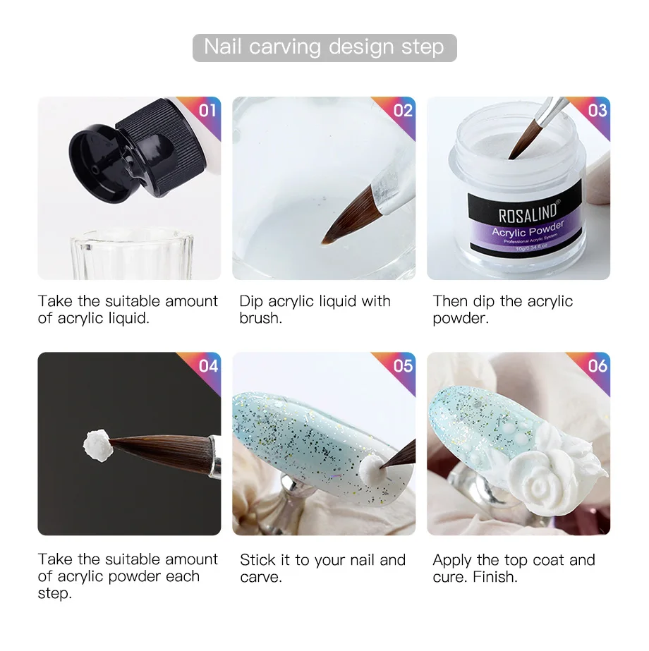 ROSALIND 10 г кристаллический акриловый набор порошков для дизайна ногтей украшения для наращивания ногтей резьба по ногтям для маникюра