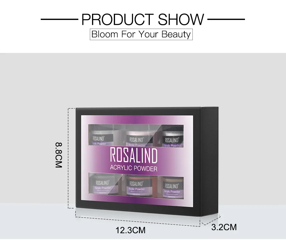 ROSALIND,акриловая пудра для, дизайна ногтей, украшения для ногтей, полимерные 6 видов цветов для наращивания, набор кристаллов в коробке, все для маникюра,акрил
