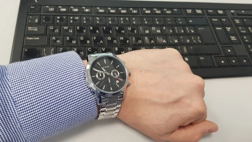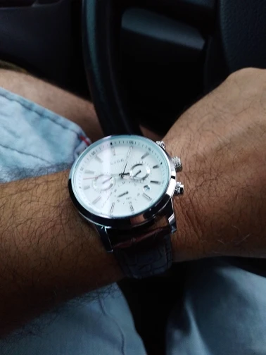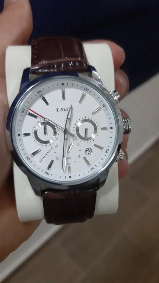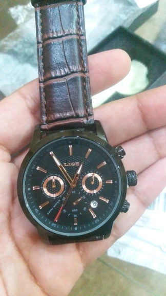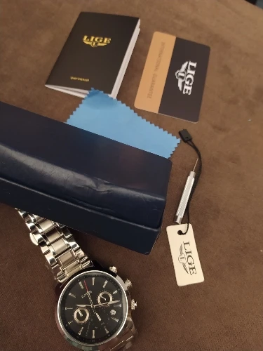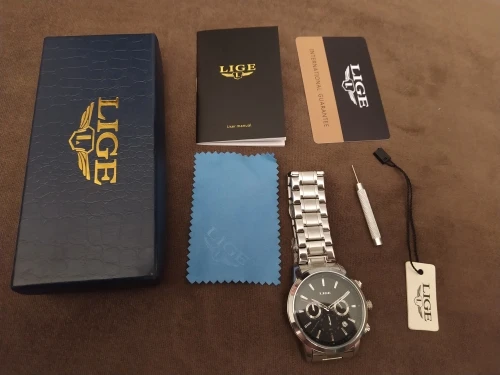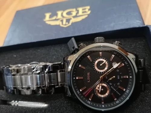 Не плохие часы, все стрелки работают. Упакованы так себе - вся коробка помята... На мой вкус много хрома, шлифовка смотрелась бы дороже. В добавок цвет ремешка и корпуса часов разные - ремешок отдаёт жёлтым оттенком. И глубоко посаженный циферблат тоже минус. Лучше заказать их с кожаным ремнем и купить браслет отдельно, он тут стандартный, в сравнении на фото ориент, размеры браслета идентичны. Если учесть, что ориент в 15 раз дороже, то lige достойный вариант за полторы тысячи рублей)