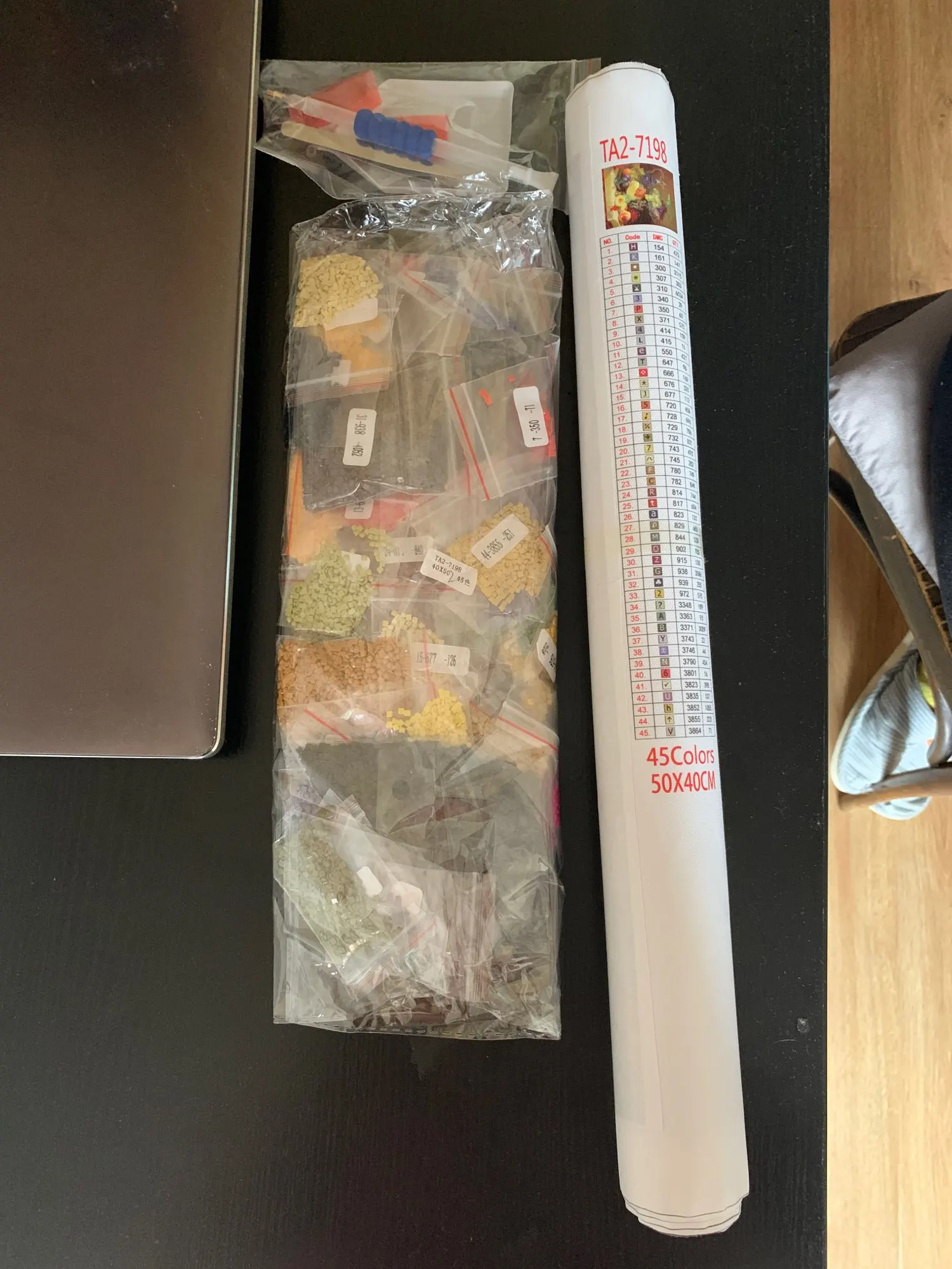 Пришло быстро, было идеально упаковано - помимо того, что сама картина была намотана на рулон, весь пакет был обернут в "спасательный жилет" - конструкцию из полиэтилена, надутую воздухом. Благодаря этому заказ не повредился. Количество пакетиков со стразами совпадает с количеством цветов на картине (48), хватит их, или нет - увижу в процессе работы. Очень довольна!
