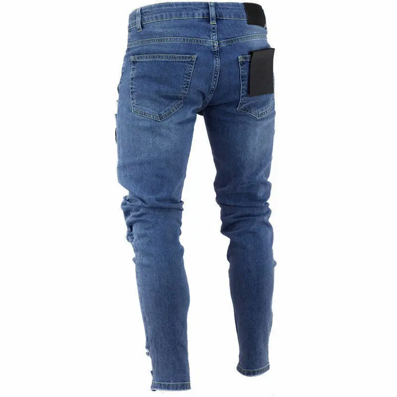 Стильные мужские Стрейчевые рваные облегающие байкерские штаны, облегающие зауженные джинсы с поясом на резинке, шаровары, мужские джоггеры, штаны для бега, для мужчин