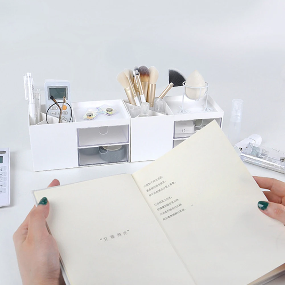 Пластиковый ящик для хранения ювелирных изделий Органайзер-ящик для хранения макияжа, держатель для кистей и ручек, органайзер для макияжа