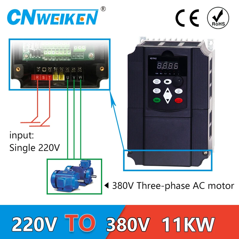 WK310 15HP/11kw boost Frequency inverter single phase 220V converter to three phase 380v AC power transformer for motor VFD