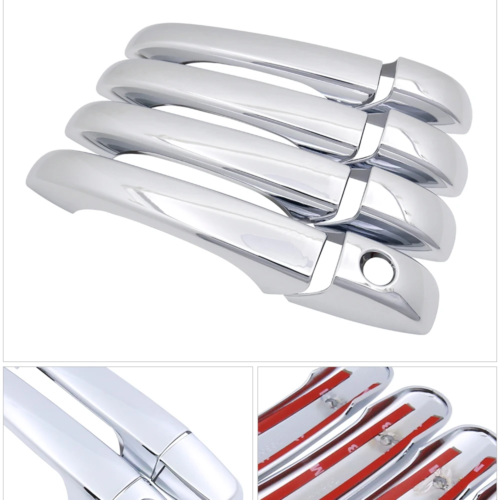 Высококачественная стильная хромированная крышка для дверных ручек для отличной защиты автомобильных дверных ручек. И подчеркнет внешний вид автомобиля. Изготовлен из высококачественного АБС-хромового пластика.