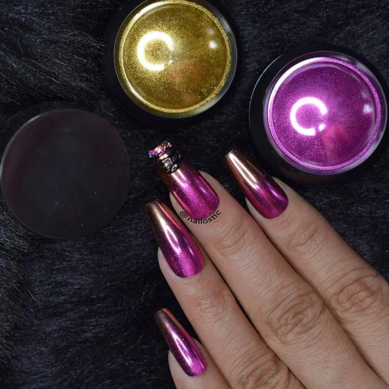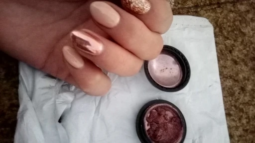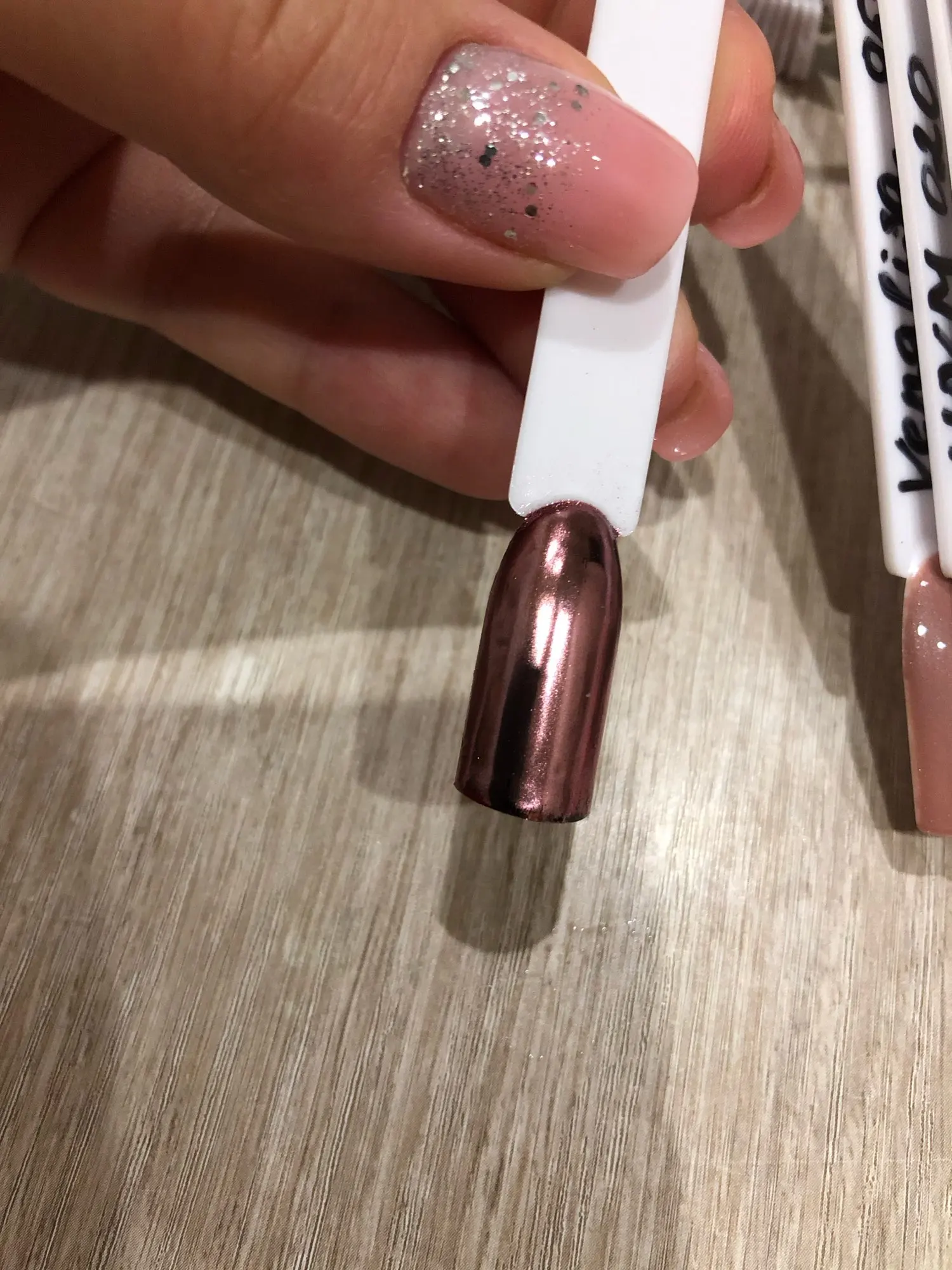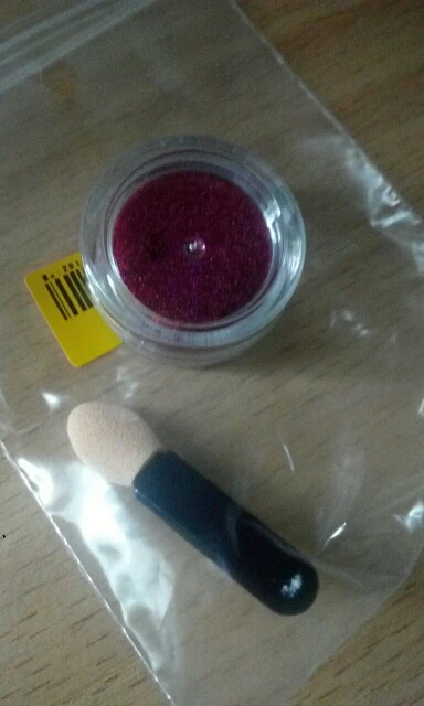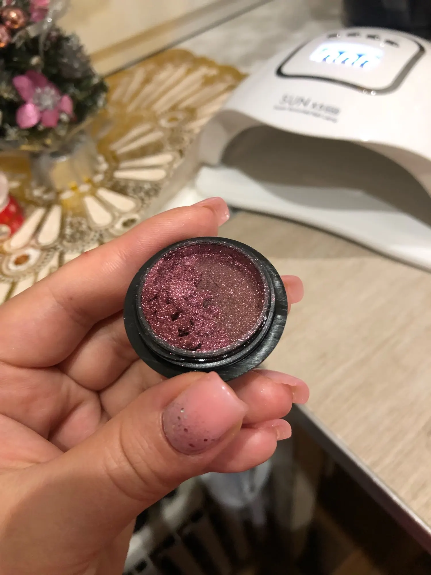 Доставка заняла больше месяца. Втирка шла в комплекте со спонжем, но у меня не получилось нанести им. А пальцем легко. Наносила на топ без липкого слоя, просушенный в лампе 60 секунд. В качестве подложки чёрный гель-лак. Цвет втирки, как по мне, не такой розовый, как хотелось бы, но красивый. В баночке пигмента мало(((