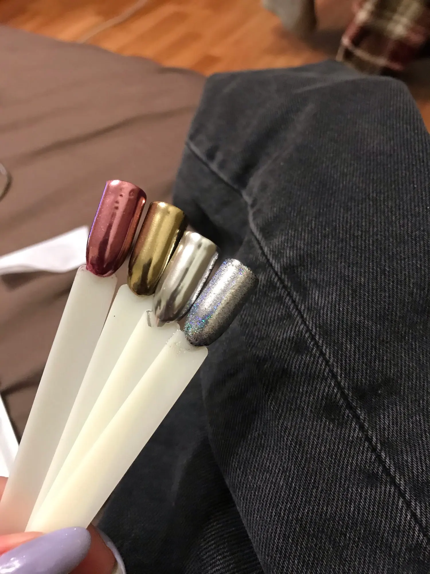 Я заказал золотой, красный, розовое золото (коричневый) и зеленый порошок, это нормально, качество зависит от выбора лака под порошком...