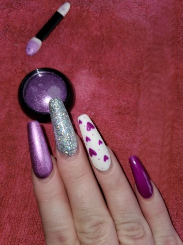 Абсолютно красиво! Он тоже довольно пигментирован. Там довольно немного пудры по цене. Я буду сказать, что было немного сложно открыть его на 1 месте, он был на супер тугой, так что просто будьте осторожны, открывая его, в противном случае вы будете иметь его по всему месту. Продавец отправил товар в течение пары дней и примерно через 3 недели он был доставлен в мой дом. На 2 фотографиях с крупным планом мои ногти были почти 2 недели ношения, поэтому он хорошо держится .. Под ней я использовал Фиолетовый лак, потому что у меня нет черного, поэтому он будет выглядеть гораздо лучше с черным. Я бы определенно рекомендовал.