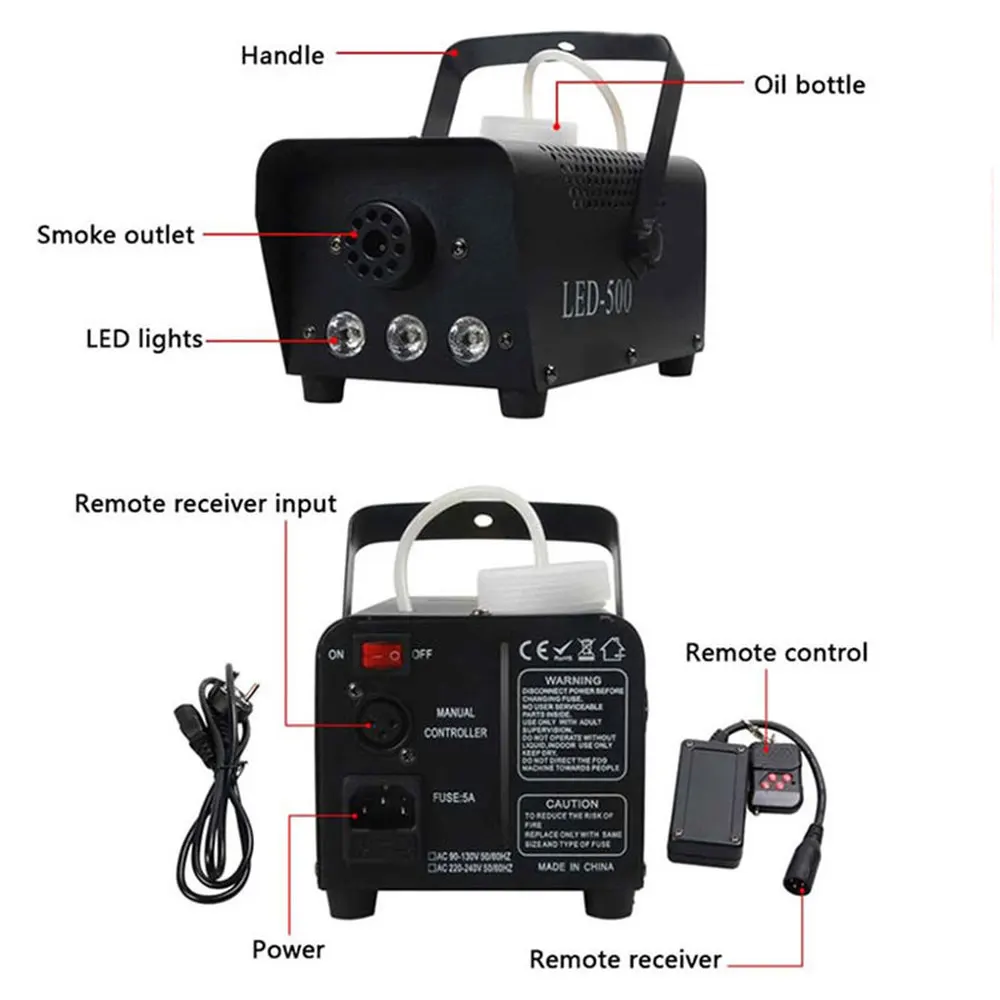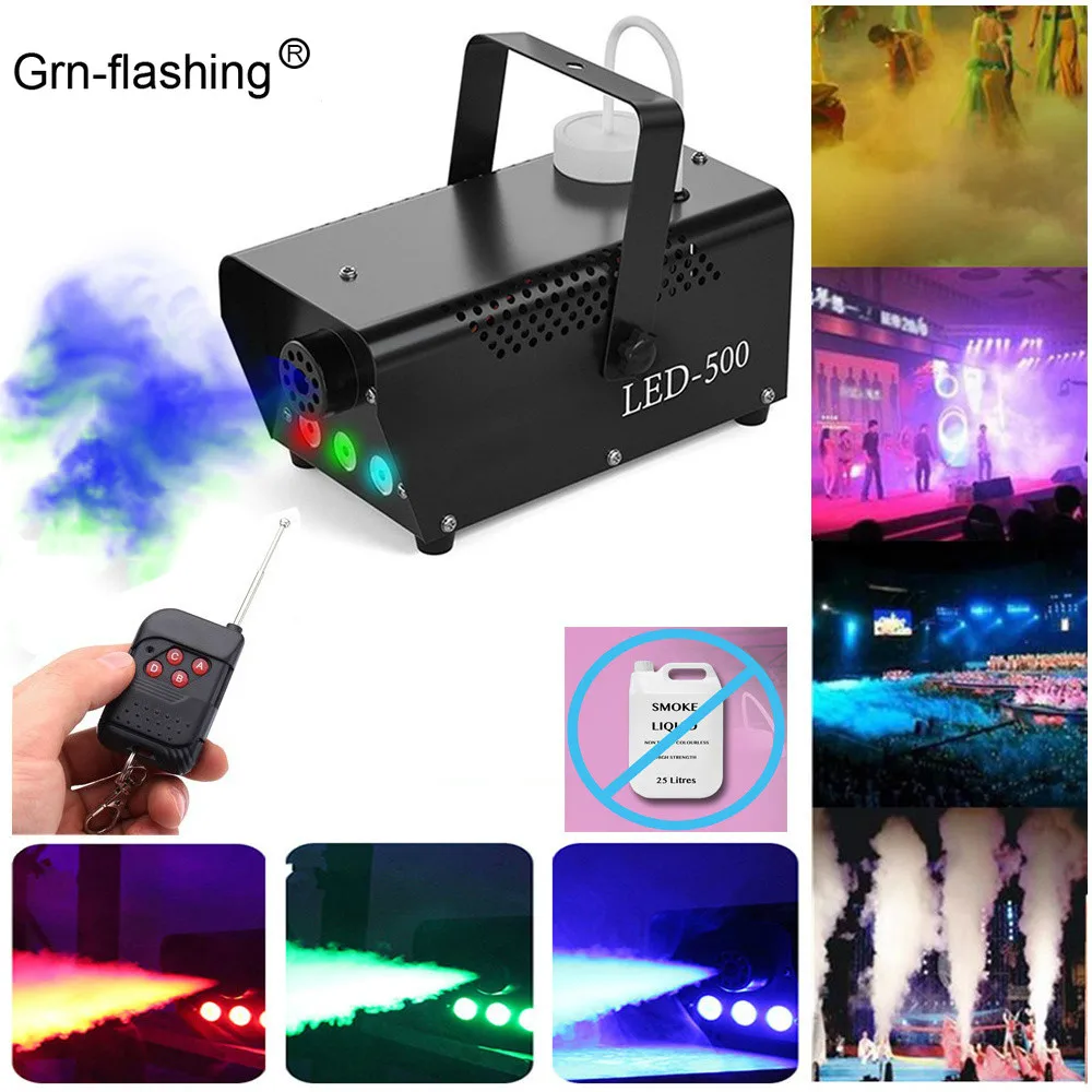 Дискотека 500 Вт, цветная дымовая машина, светодиодный пульт дистанционного управления, эжектор для диджея, Рождества, домашвечерние, сценический эффект, противотуманная машина
