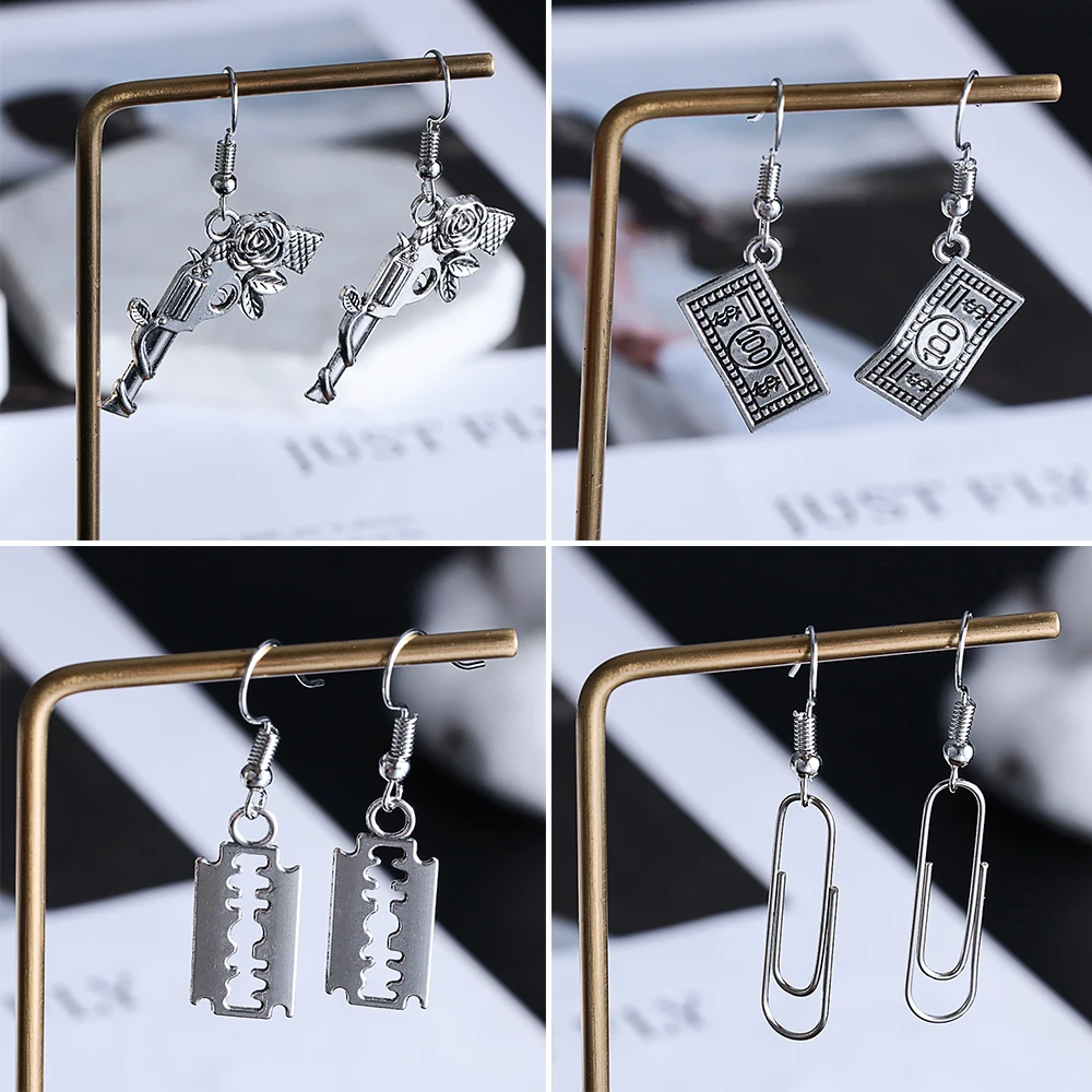 100% абсолютно новый, высокое качествоРазмер: как на картинкеЦвет: античное сереброФорма: пистолет/лезвие/наручники/зубная пастаМатериал: металлПосылка включает в себя: 1 пара панк-сережек