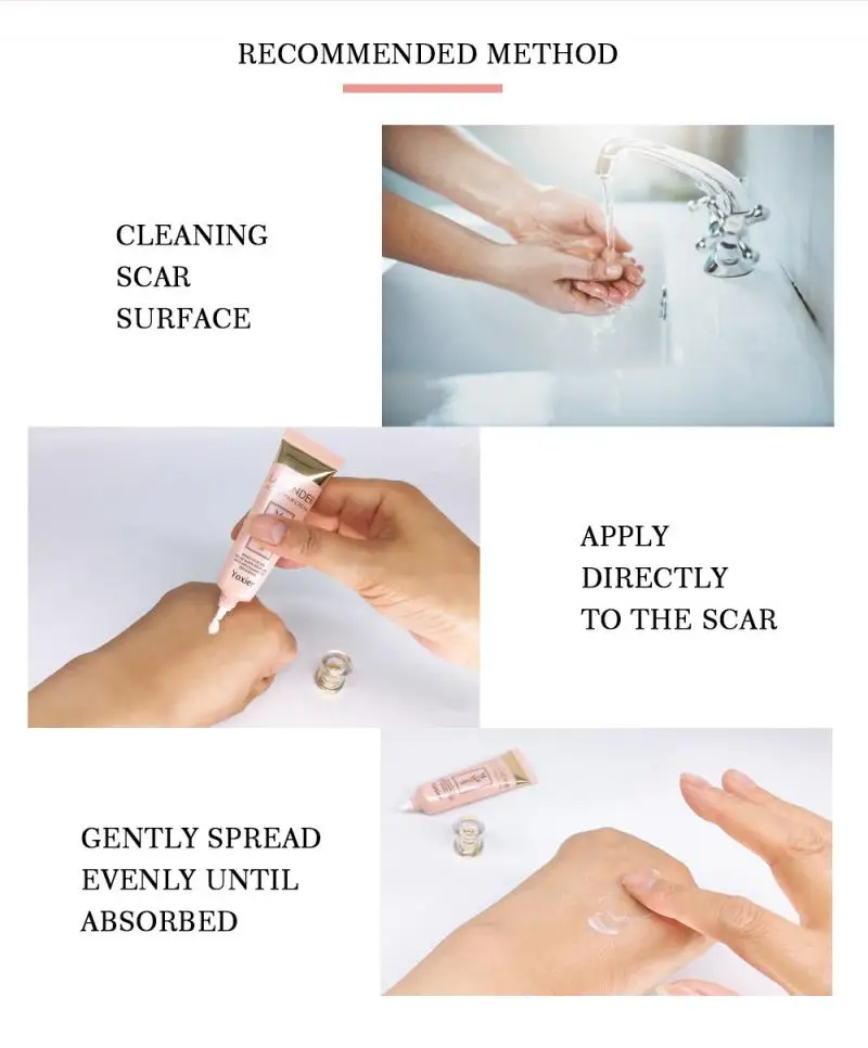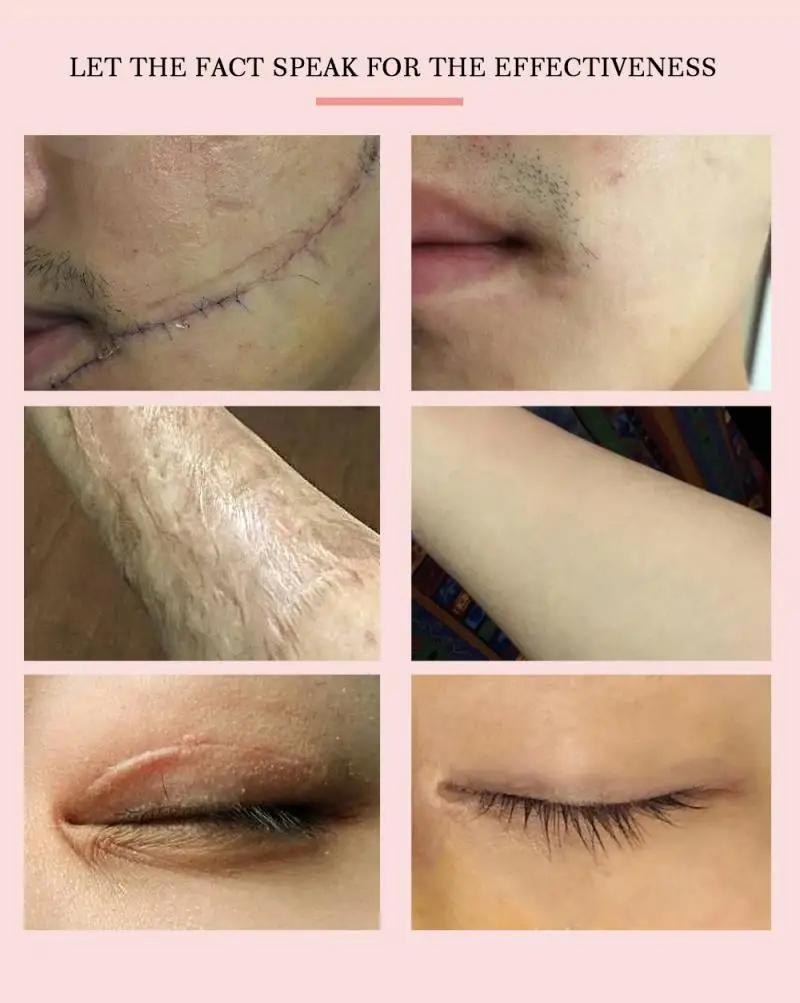 Эффективно восстанавливает шрамы, глубоко проникает, способствует поглощению и изменению структуры кожи.
