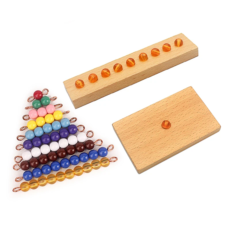 Золотые бусины Монтессори с деревянным подносом, цветные бусины, сотни квадратных бусин, образовательные счеты Обучающие математике игрушки для детей