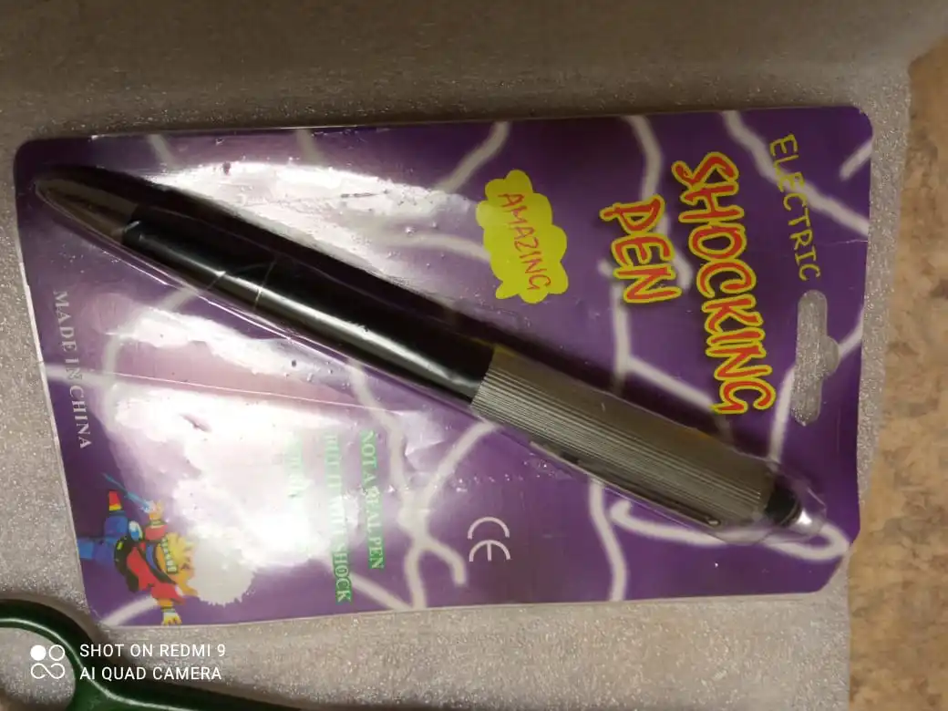 Новинка, электрошоковая ручка, гаджет, гаджет, шутка, шутка, розыгрыш, трюк, игрушка в подарокХарактеристики:Замаскированный под ручку, вы получите абсолютное удовольствие от поражения электрическим током своих коллег и друзей.Просто поверните, как получите обычную ручку.Предложите его своим друзьям, и после нажатия кнопки в верхней части ручки они получат быстрый и безвредный Электрический шок, который заставит их кричать.Отлично подходит для дня рождения, Рождества и любого подарка. Поднимите дух вокруг с безвредным, безопасным, потрясающим удовольствием!Тип: электрошоковая ручкаМатериал: пластикИсточник питания: 4 батарейки LR41 (в комплекте)Особенности: игрушка-розыгрыш, ручка для письма, сейф, поражение электрическим токомДлина: 14,5 см/5,71 дюйма (прибл.)Примечания:Из-за разницы в освещении и настройках экрана цвет изделия может немного отличаться от изображения.Возможны незначительные различия в размерах из-за различий в измерениях вручную.Посылка входит:1 х ручка для электрошока