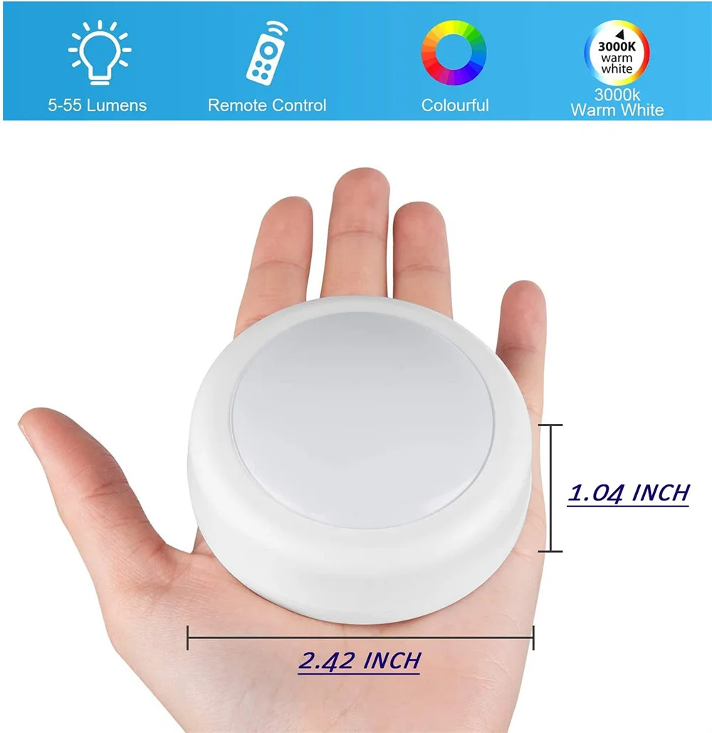 Подсветка под шкаф, беспроводной светодиодный ночник с дистанционным управлением, 16 цветов, с регулируемой яркостью, для шкафа, чулана, лестницы, настенное освещение
