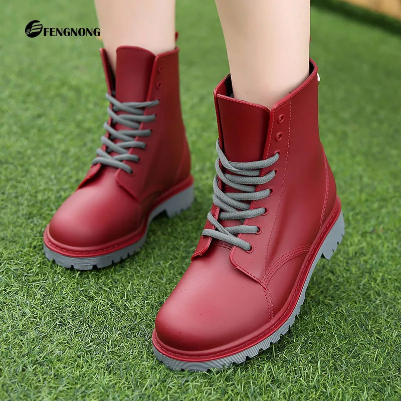Водонепроницаемые резиновые ботинки, на шнуровке, полусапожки на платформе, модная обувь для девушек и женщин
