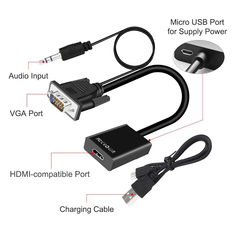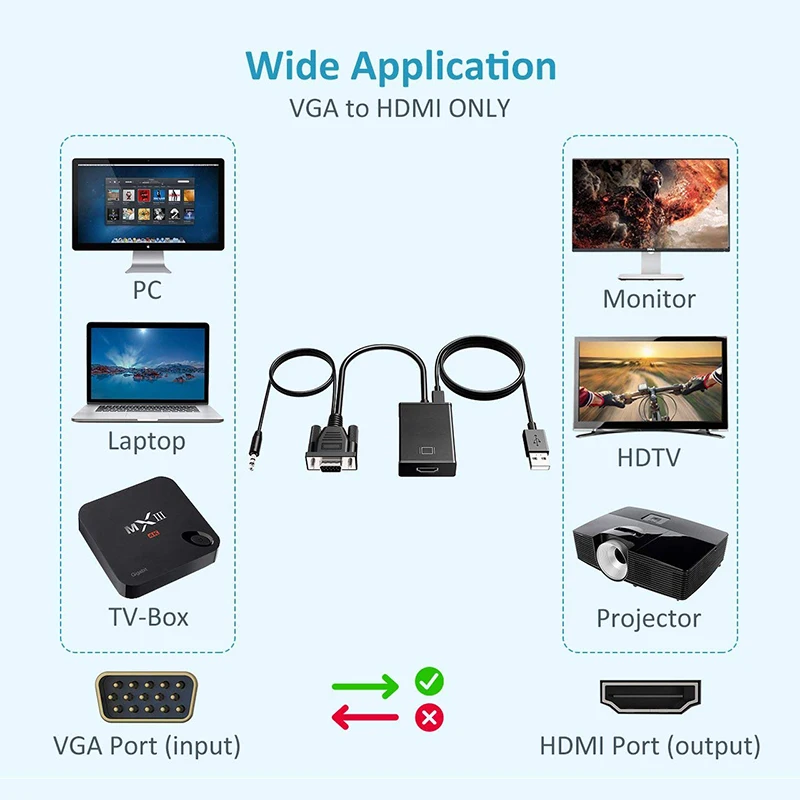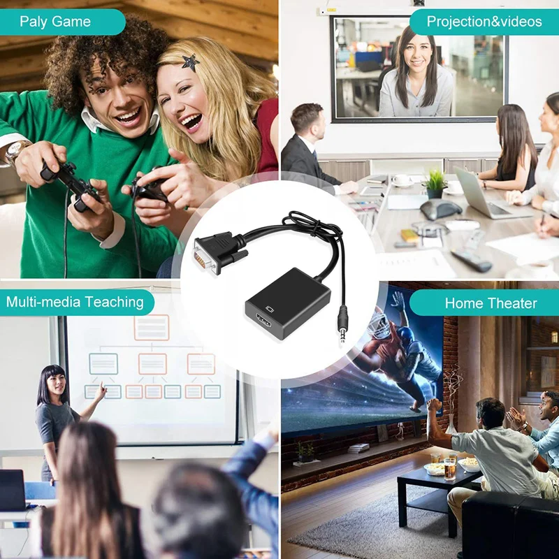 VGA к HDMI-совместимый динамик Aux аудио кабель ps4 tv box сплиттер конвертер Displayport телевизионный проектор расширитель адаптер