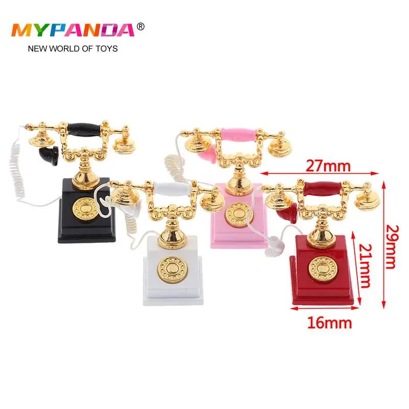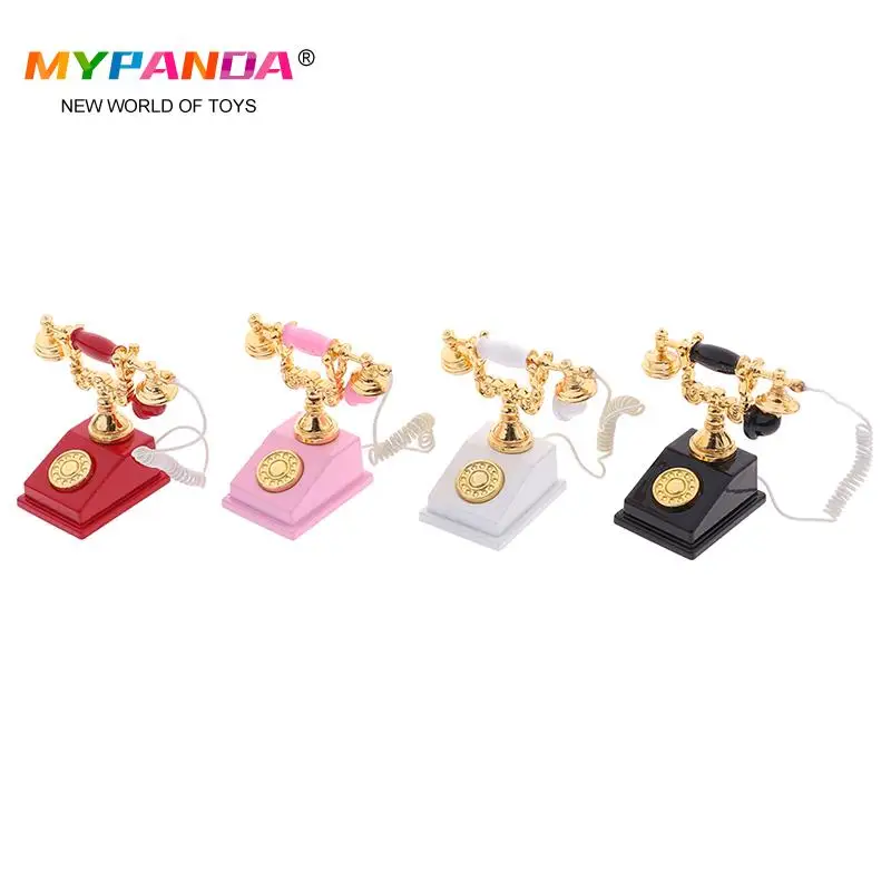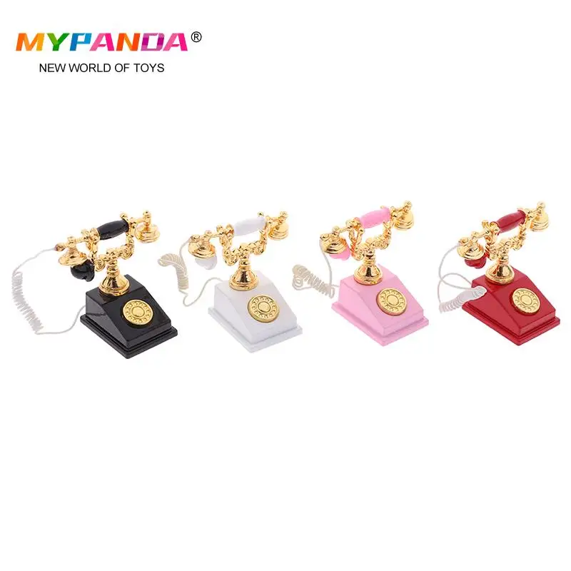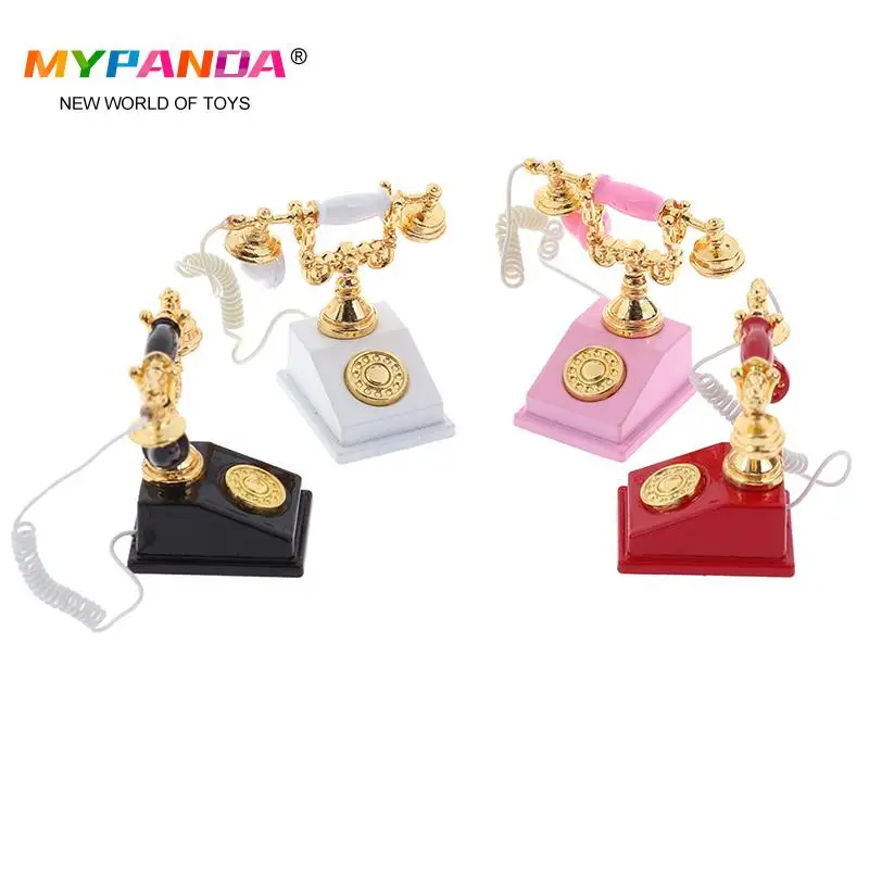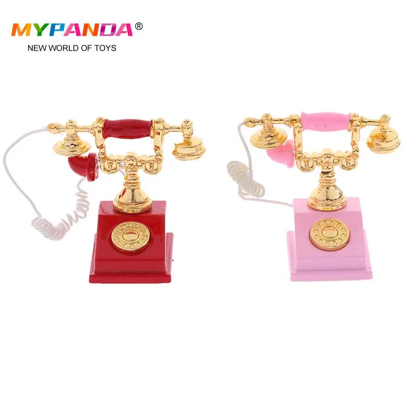 1:12 Миниатюрная модель телефона из сплава, винтажный Вращающийся Ретро телефон, аксессуары для украшения кукольного домика