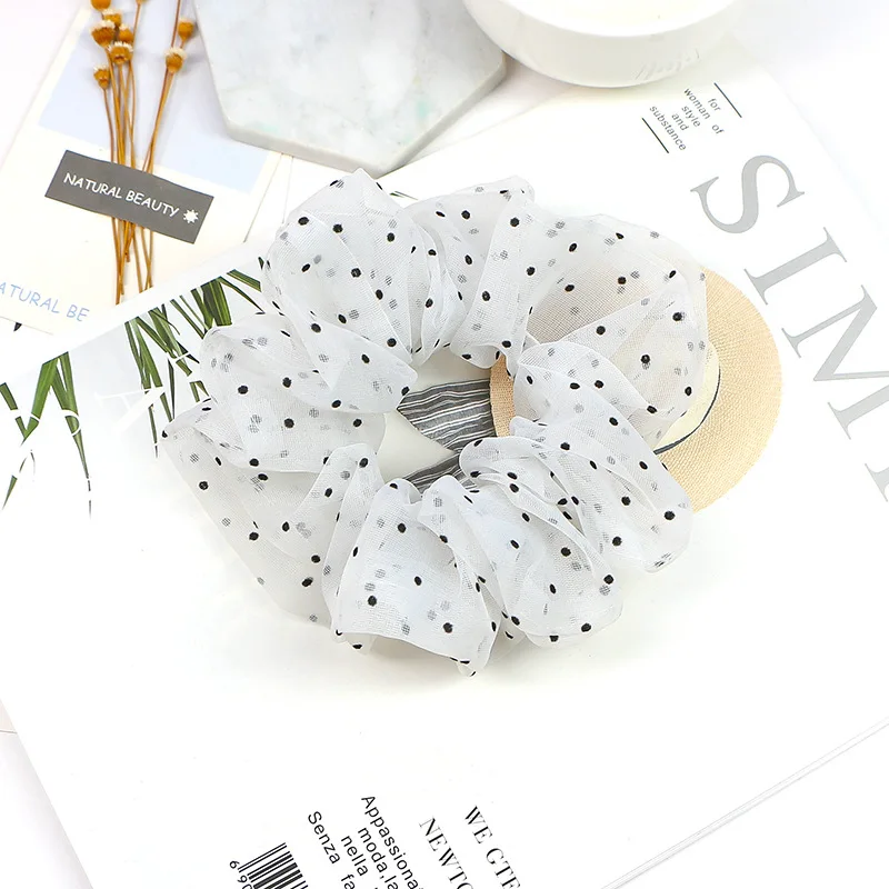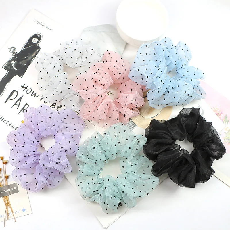 Резинка для волос Женская в горошек, резиновая петля в Корейском стиле, эластичная заколка для конского хвоста, аксессуар для волос