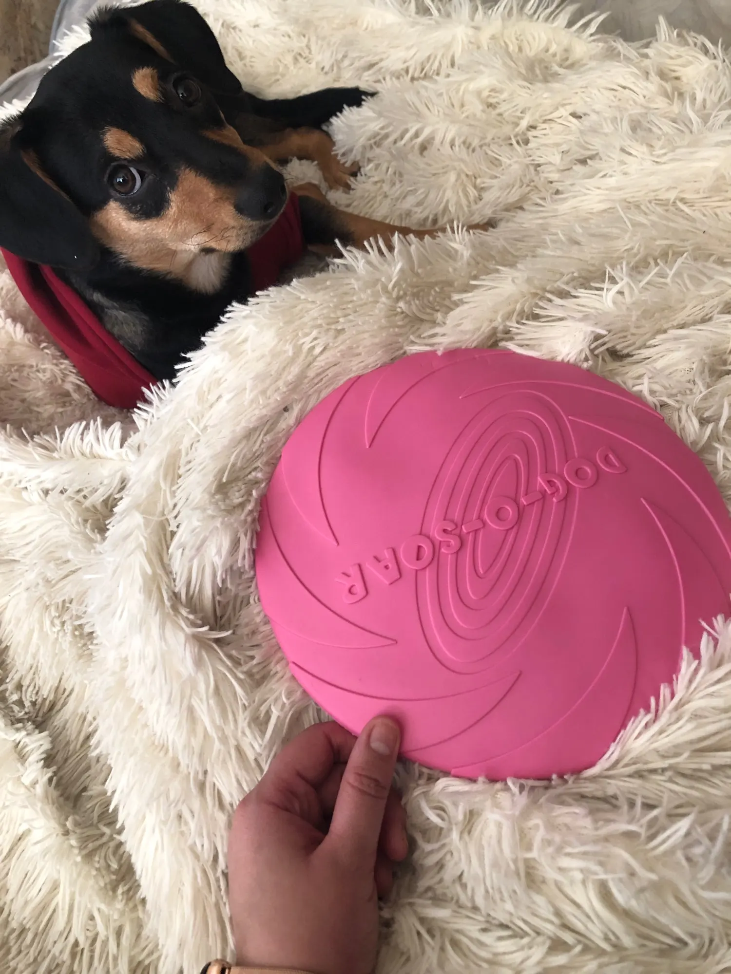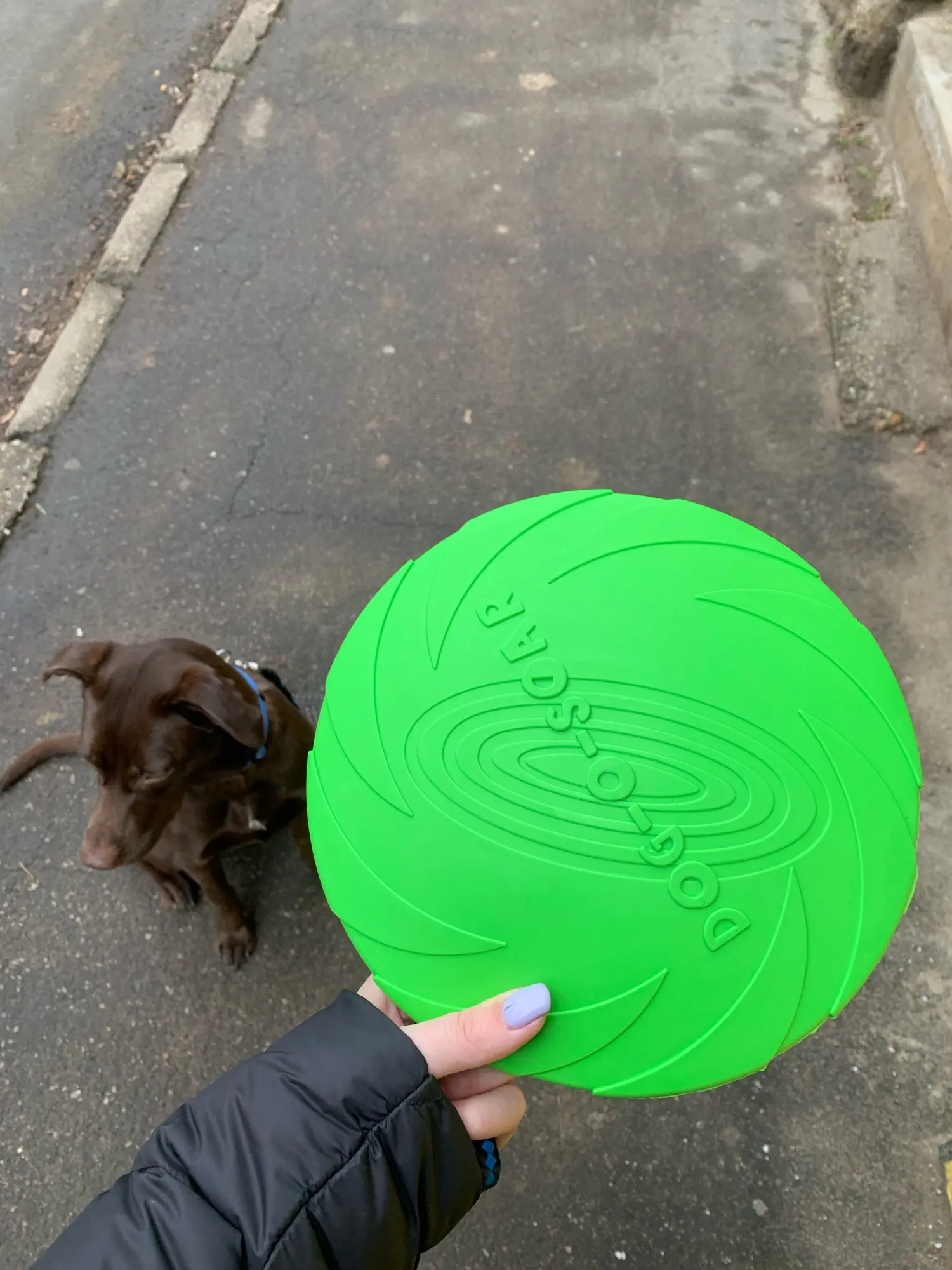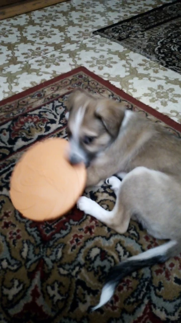 классная, хорошо летает. Если грызть и терзать, то потеряет внешний вид, если использовать по назначению, то норм. Взяди М подходит как для мелкого цвергшнауцера, так и для крупной нашей второй собаки, размером с овчарку.
