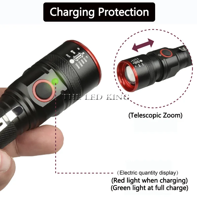 фонарик в целом не плохой, но отличается от того что на фото у продавца. индикатор зарядки в самой кнопке светиться, зелёный при работе фонаря и красный когда заряжается. тот фонарик что на фото видел у знакомого, он при нажатии один раз на кнопку включается и выключается, а при двойном быстром нажатии переключает режимы. на этом же фонаре надо переклацывать все три режима чтобы выключить, это не удобно