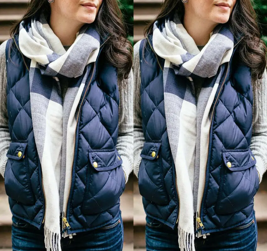 Женский клетчатый жилет, повседневный теплый жилет на молнии без рукавов, черный, коричневый, темно-синий, хаки, армейский зеленый, зима 2020
