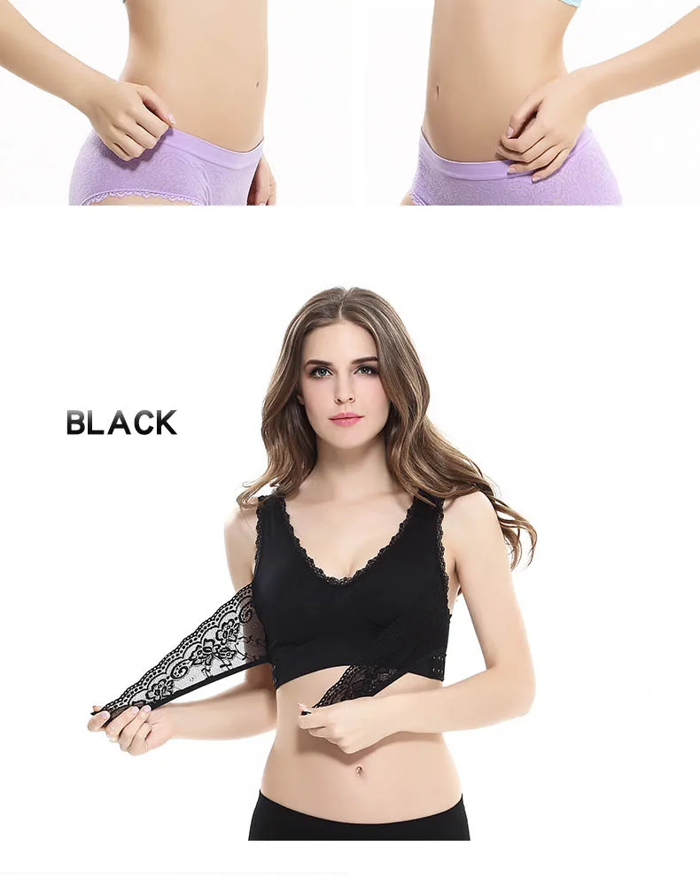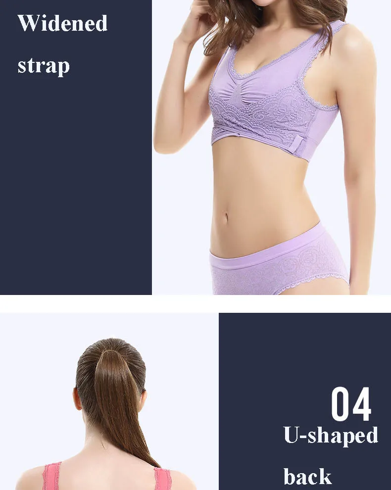 Особенности: Материал: нейлон Размер: S, M,L,XL,XL,XXL,XXXL 1. Все белье не имеет стального кольца, нет давления. 2. Крестообразная конструкция, сохраняет форму чашки долговечной, не деформируется, крестообразная пряжка. 3. Изготовлен из тонкого материала, здоровый и удобный, дышащий, пот, отделка кружевом. 4. Подходит для занятий спортом, сна и йоги. 5. Конструкция широких ремней может снять нагрузку на плечи для обеспечения оптимальной поддержки. Плоские плечевые ремни дарят идеальную и комфортную посадку.