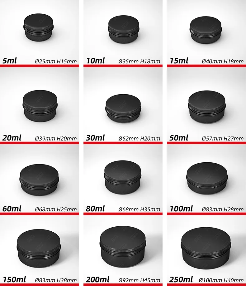 50 шт.лот 10 мл-250 мл черные алюминиевые банки многофункциональная...