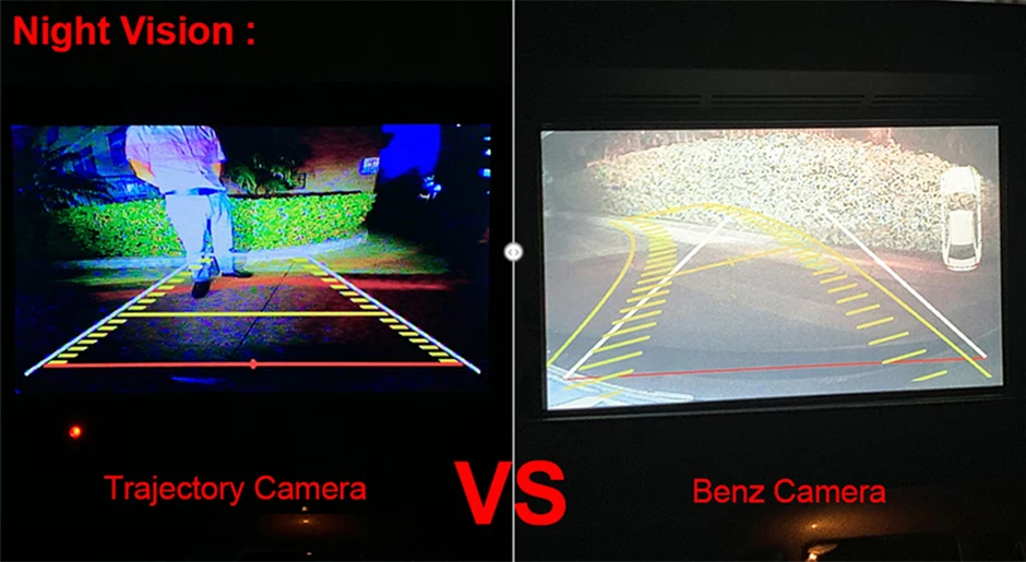 ** Траектория камеры VS камеры Benz сравнить фотографии:1. Камера траектории имеет угол 155 градусов. Оригинальная камера benz имеет угол 120 градусов.2. Камера траектории ночного видения более четкая по сравнению с камерой benz.