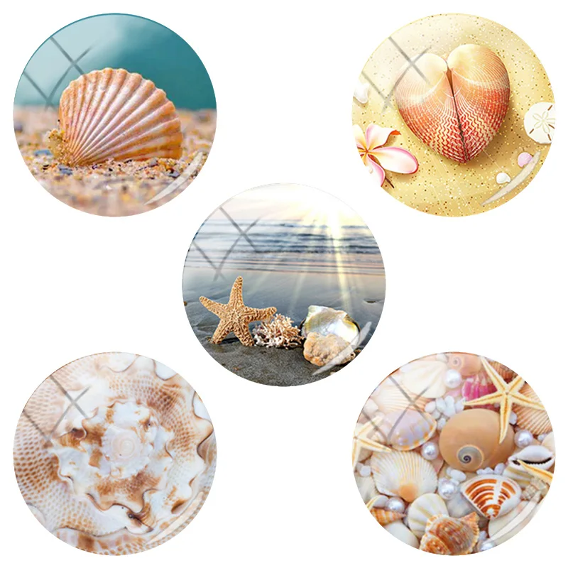 TitleExquisite beach shell texture Round Glass Cabochon Jewelry Findings